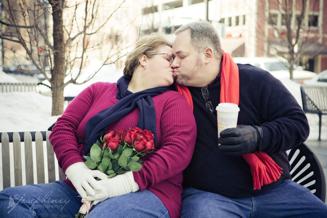This was like the sweetest couple ever. Not only were they fun and playful but they were just so awesome to work with! Jeff brought roses to give Melissa. We met at the Chocolate Cafe so they had some great hot drinks first and then we headed out for some shots downtown. They were super cooperative and great to chat with. And then when we were done they handed me one of the roses to keep. Seriously, I have the best job ever and meet the coolest, most wonderful people ever. :) Thanks guys for such a wonderful session. It was so great to meet you both!